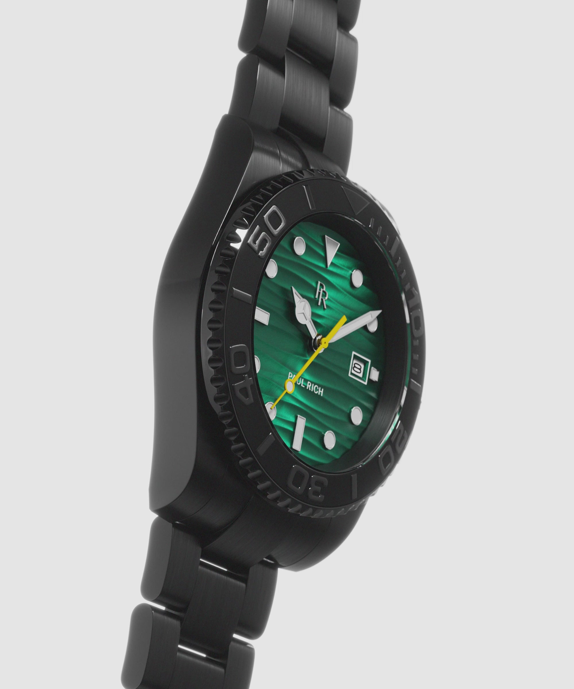 ![Black stainless steel watch with a teal wave-textured dial shown on a wrist, highlighting the bracelet, bezel, luminous markers, and yellow seconds hand. [lifestyle] product_visual Black stainless steel watch with a teal wave-textured dial shown on a wrist, highlighting the bracelet, bezel, luminous markers, and yellow seconds hand. [lifestyle] product_visual](http://paul-rich.eu/cdn/shop/files/MidnightReefwebsite1_9b7c4704-5b14-41e2-bd5f-ca2cc24fe8b0_1135x1362.png.jpg?v=1765300561)