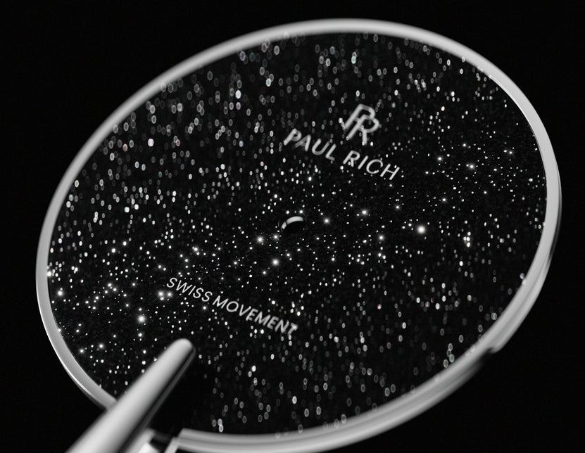 At Paul Rich, the aventurine dial isn’t just a dial—it’s art. Crafted from quartz embedded with mineral inclusions, it creates a cosmic, star-lit effect that stands out. This technique, born from 17th-century Venetian glassmaking, embeds copper or hematite particles into molten quartz for that iconic shimmer. Black aventurine? Even rarer, making each piece in our collection truly exclusive. Every dial is cold-cut and polished with precision. The result? A Star Dust watch that’s bold, luxurious, and absolutely unique.