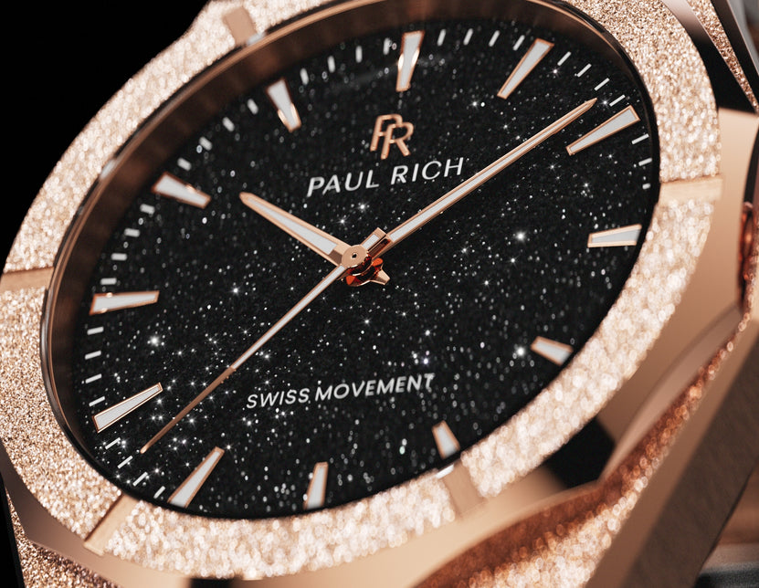 Dark. Rare. Powerful. A black aventurine dial, capturing the depth of the night sky. Wrapped in stainless steel with a frosted finish that hits like diamond dust. This isn’t just a watch—it’s a statement. Step into The Void.